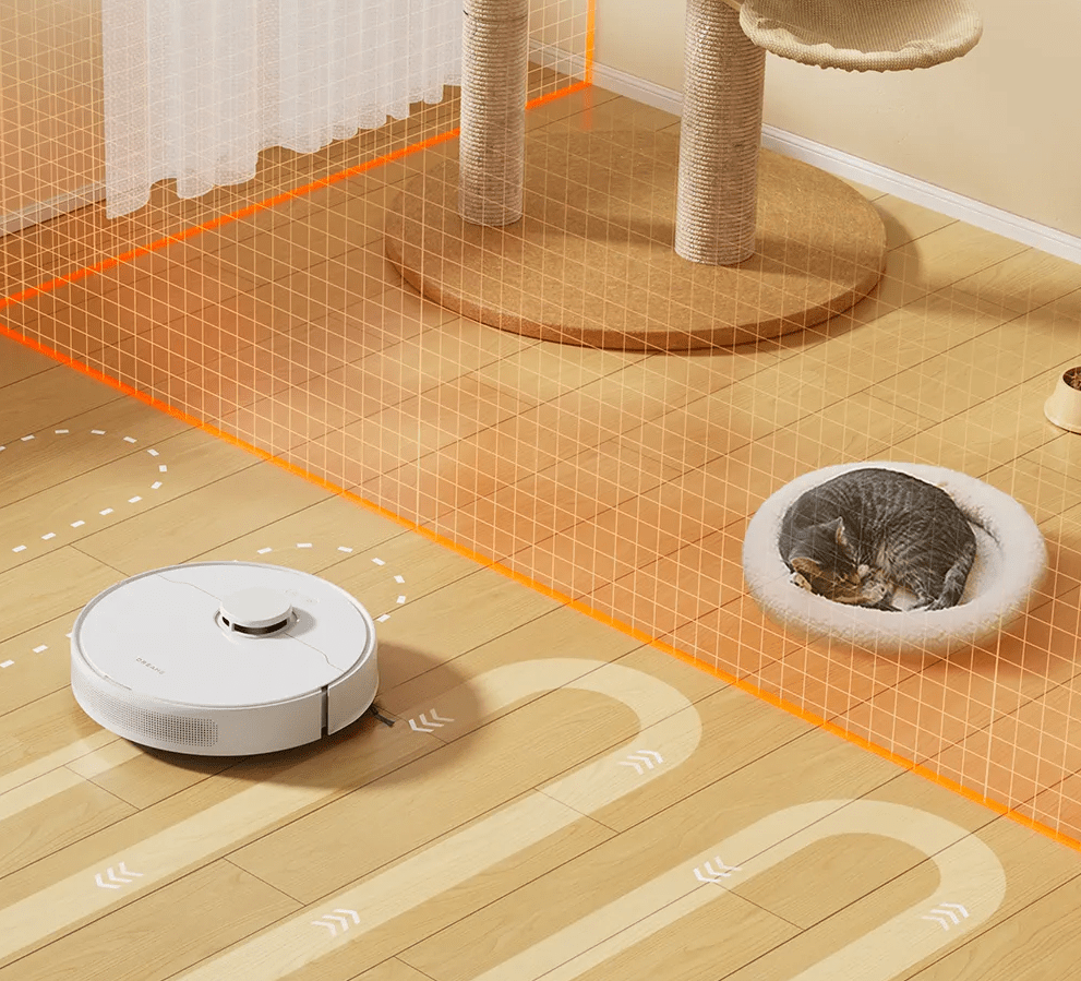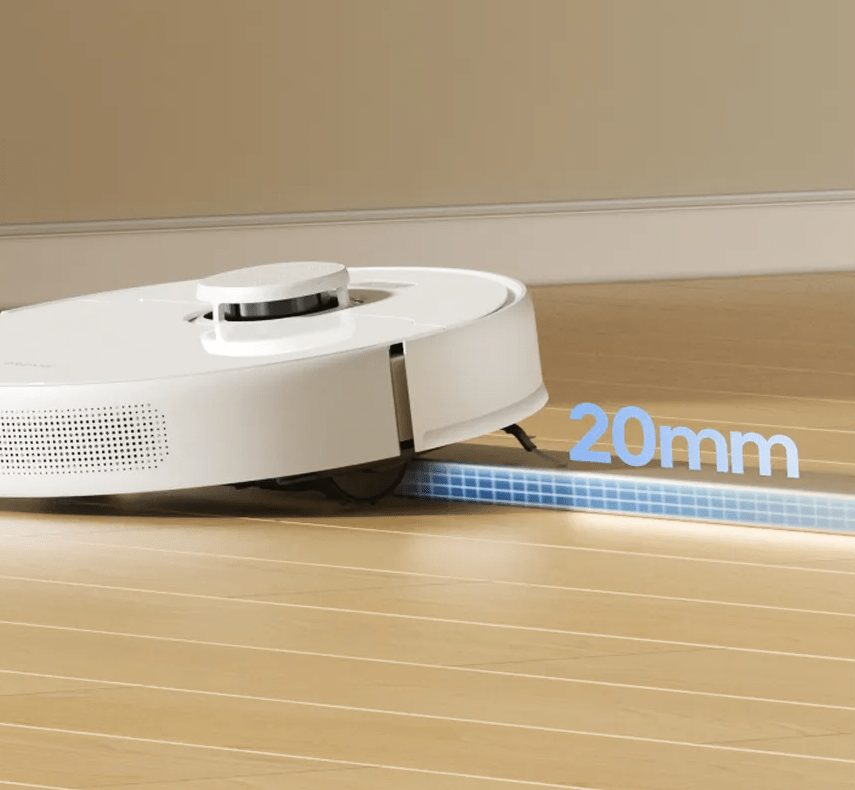 این ربات هوشمند میتونه به راحتی از روی موانع با ارتفاع 20 میلی متر (2 سانتیمتر) عبور کنه و از بین اجسام روی زمین، حرمت کنه. همچنین به آسانی از این اتاق به اتاق دیگه میره بدون اینکه به پایین چهارچوب درب برخورد کنه یا روی ورودی درب، گیر بیفته.