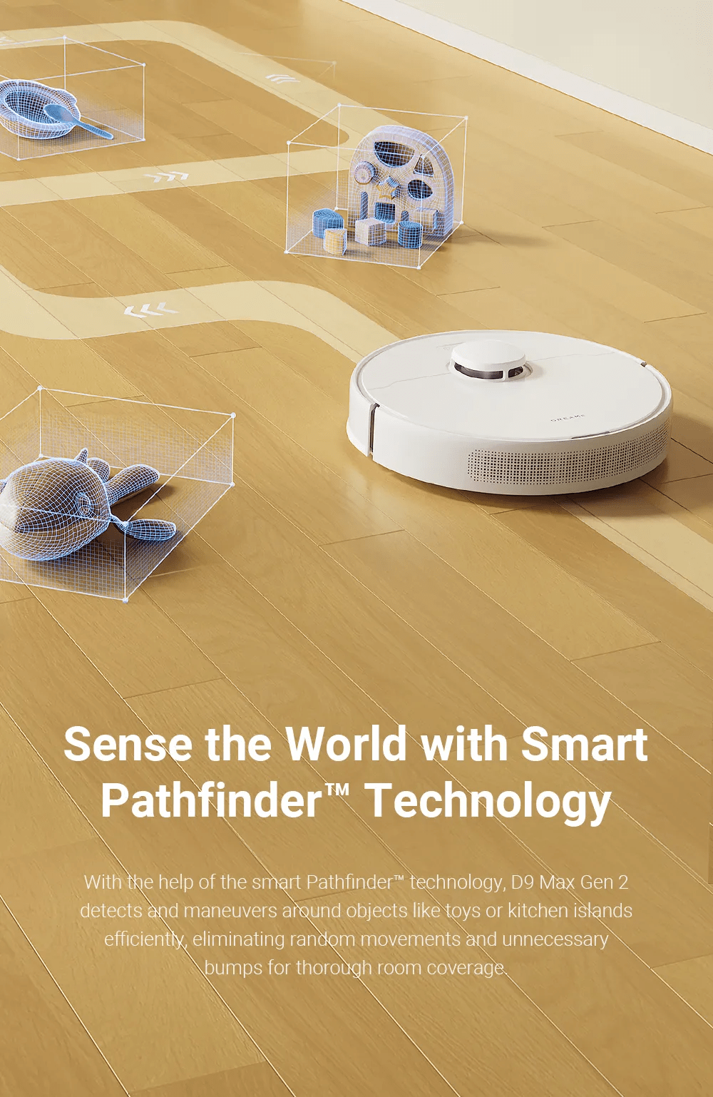 یکی از مهمترین ویژگی های جاروبرقی رباتیک نسل دوم D9 Max، مسیریابی با استفاده از تکنولوژی Pathfinder است که با اسکن 360 درجه نقشه ی خانه رو به دست میاره و ذخیره می کنه. ضمنا با تشخیص دقیق موانع ، در اطراف اشیا با انعطاف پذیری حرکت میکنه و به چیدمان منزل برخورد نمیکنه. در نتیجه بدون ایجاد دردسر کل خونه رو تمیز میکنه.