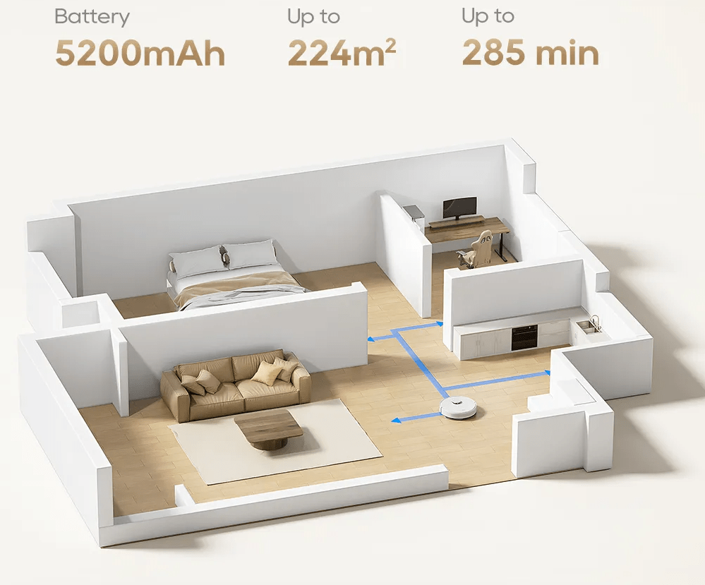 این جارو رباتیِ جدید شیائومی به خاطر ارتفاع کمی که داره (حدود 10 سانتی متر) به راحتی میتونه زیر مبلمان، میز ها ، کابینت و … رو تمیز کنه. جارو رباتیک دریم D9 Max Gen 2 با قدرت مکش 6000 پاسکالی، به راحتی همه گرد و غبار و خرده ریزه های روی فرش و انواع موکت و سرامیک را جمع می کنه.