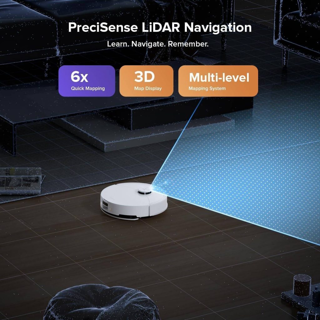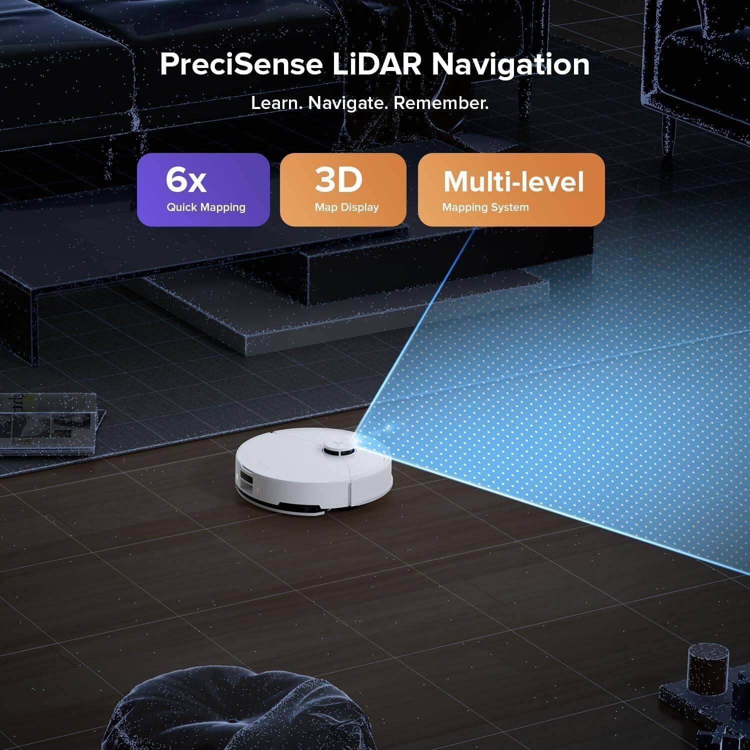 جارو رباتیک roborock s8 Pro به فناوری PreciSense LiDAR و سیستم Reactive Tech برای جلوگیری از برخورد با موانع مجهز شده است. این ترکیب به ربات امکان میدهد تا خانه را بهصورت لحظهای نقشهبرداری کرده، موانع را تشخیص دهد و مسیرهای تمیزکاری مؤثر طراحی کند. همچنین میتواند بهنرمی اطراف مبلمان حرکت کرده و از روی آستانهها عبور کند.