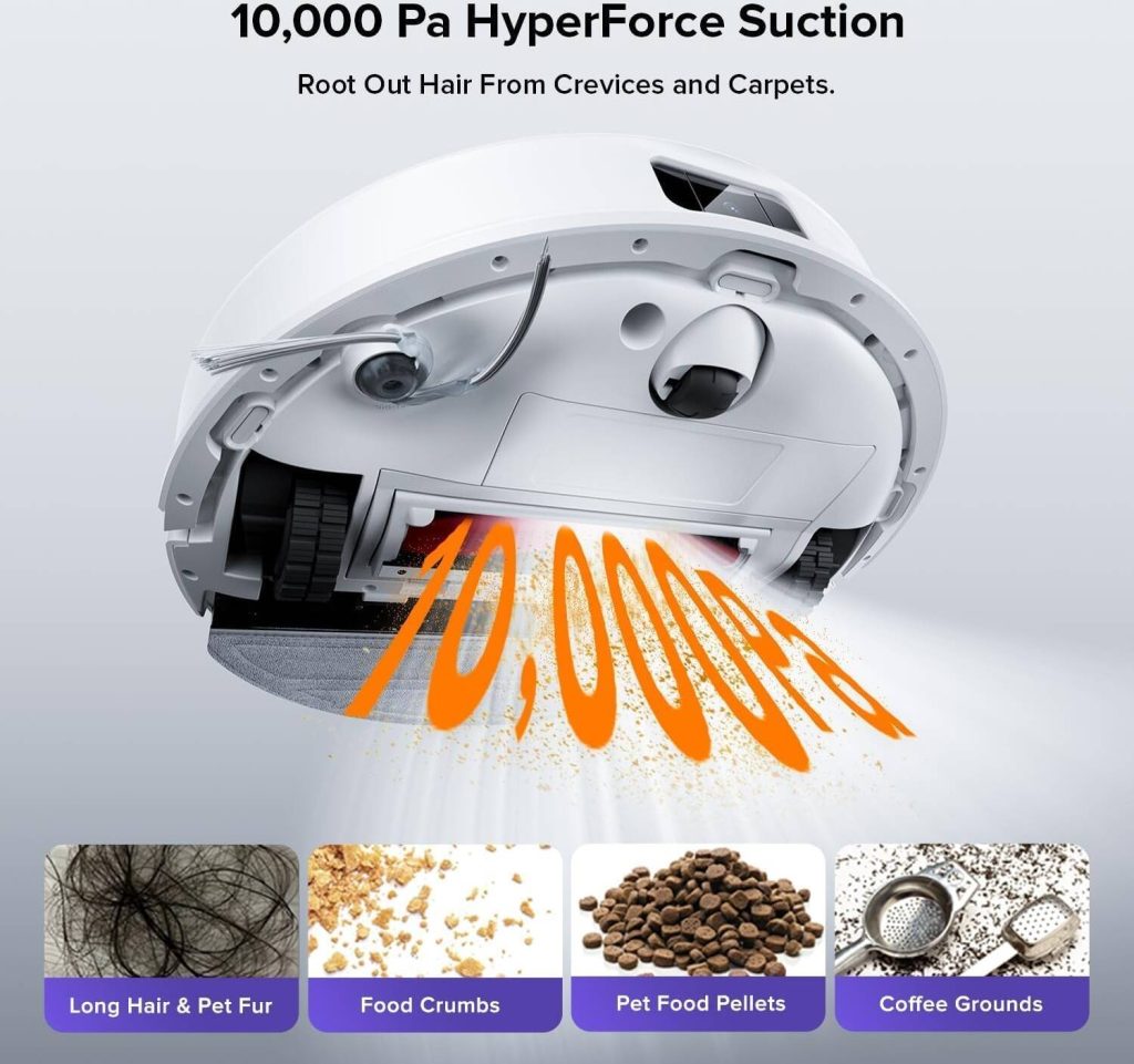 با برخورداری از مکش قدرتمند HyperForce تا 10000 پاسکال، این جارو رباتیک میتواند گرد و غبار، موی حیوانات خانگی و زبالهها را هم از روی فرش و هم از سطح زمین جمعآوری کند. قدرت بالای آن بهاندازهای است که حتی گوشهها و لبهها را نیز بهطور کامل تمیز میکند.