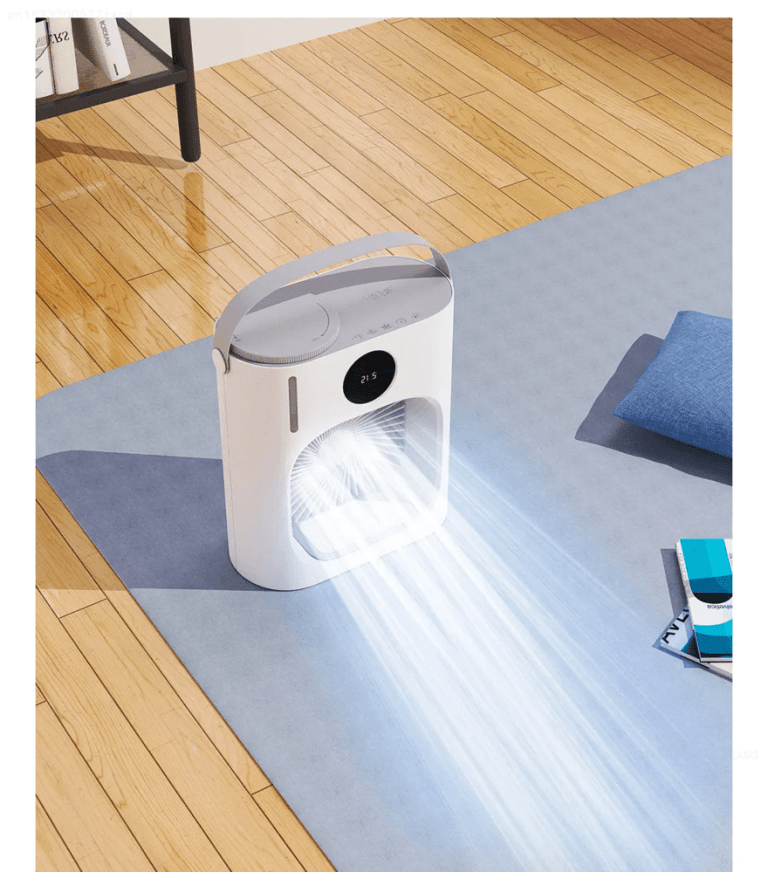 Xiaoda XD-ZMLFS01 با فناوری مه پاش، از بافت آب برای کاهش دمای هوا بهره میبرد؛ کافی است مخزن 900 میلیلیتری آن را پر از آب یا چند قطعه یخ کنید تا ظرف چند دقیقه هوای سرد و مرطوب تولید شود. این روش نهتنها به خنکایی سریع کمک میکند، بلکه به بهبود کیفیت هوا و جلوگیری از خشکی پوست و مجاری تنفسی نیز یاری میرساند.